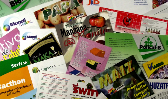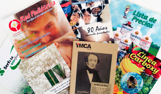 Tarjetas personales, Papel membretado, Carpetas, Sobres, Folletos, Afiches, Volantes, Almanaques, Calcomanías, Publicidad para revistas, Revistas, Manuales, Catálogos, Libros, Anuarios, Etiquetas, Cajas, Desarrollo de marca, Logotipos, Isotipos, ect.